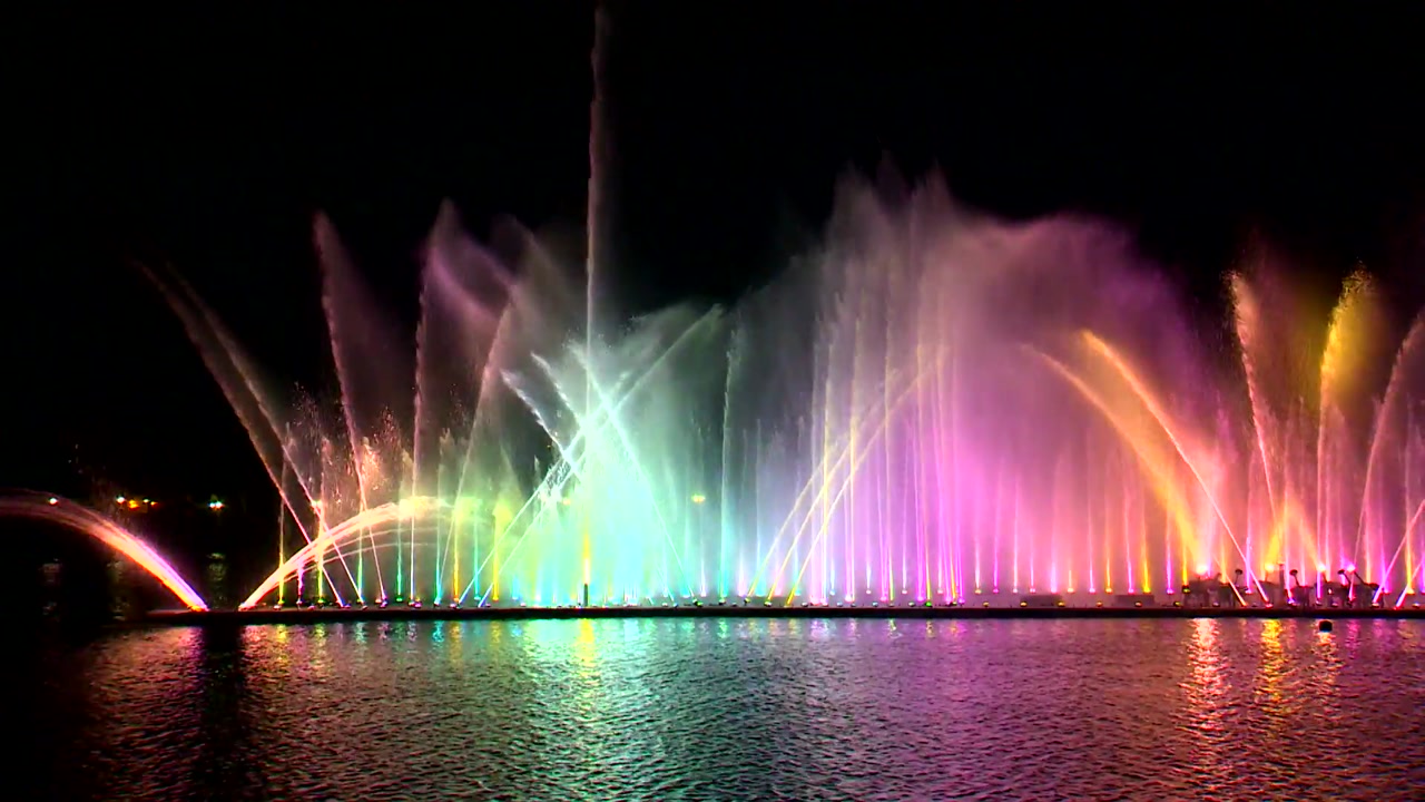 100m 높이까지 치솟는 고사 분수가 케이팝 음악에 맞춰 선을 보였습니다.