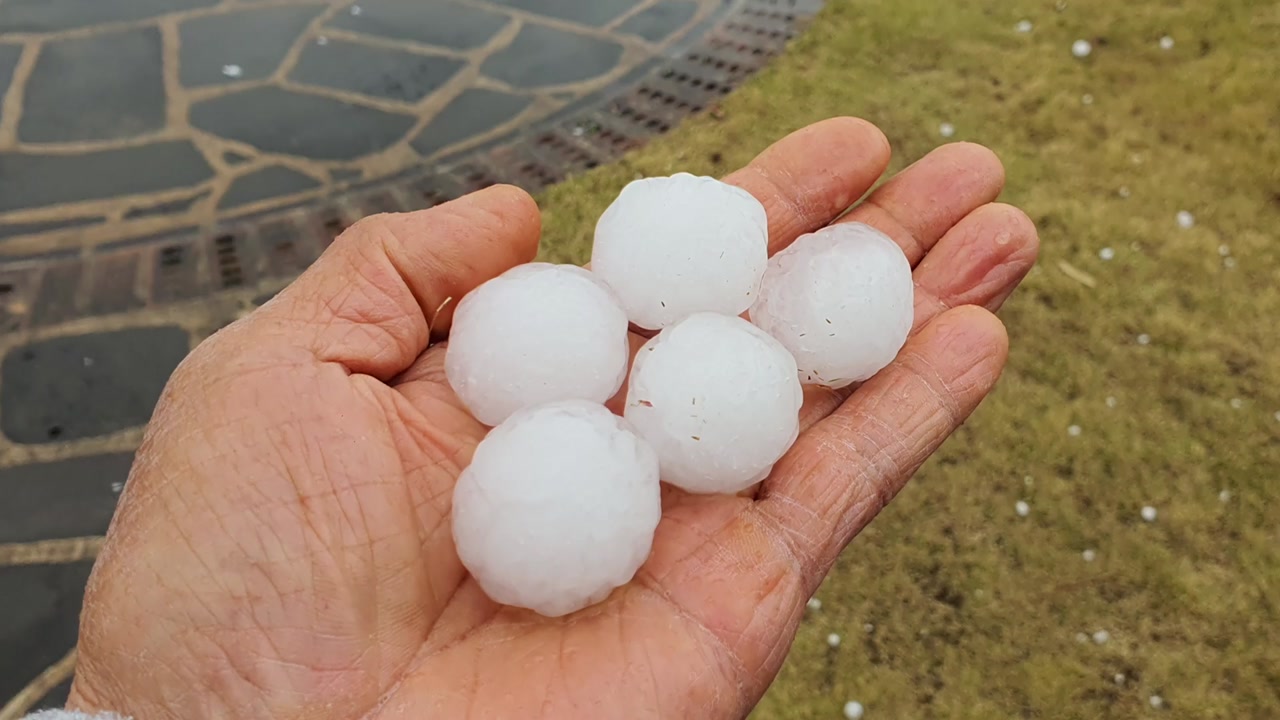지름이 1∼2㎝ 되는 것은 물론이고, 일부 지역에서는 골프공만 한 우박도 확인됐는데요.