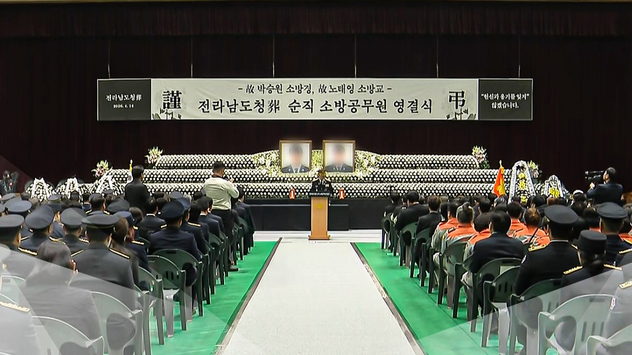 전남 완도 화재 현장에서 순직한 고 박승원 소방경, 노태영 소방교의 영결식이 엄수됐습니다.