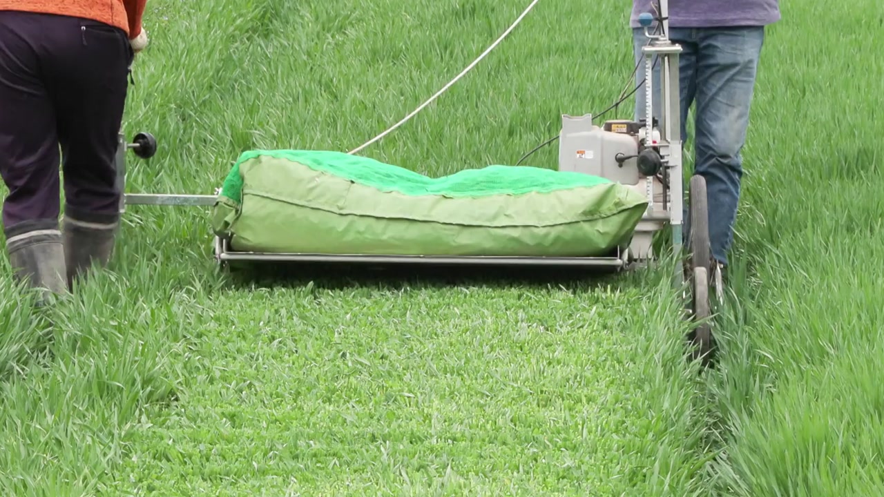 초록빛이 싱그러운 보리밭에서 새싹 수확이 한창입니다.