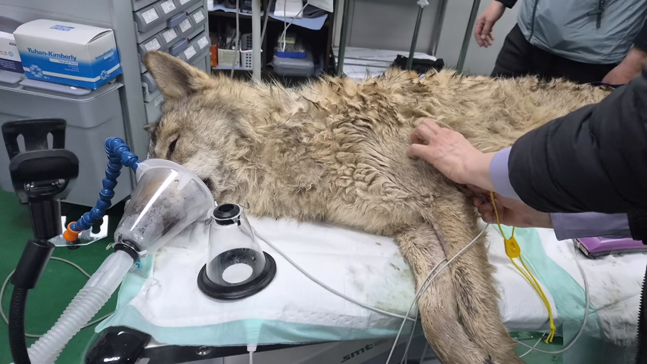 결국 수의사 입회하에 마취총을 쐈고, 늑구를 생포하는데 성공했습니다.