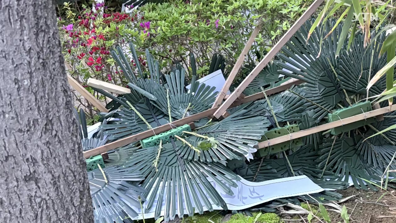 더불어민주당에서 제명된 김관영 전북특별도지사의 무소속 출마를 응원하는 화환이 세워졌다가 누군가 파손해 경찰이 수사에 나섰습니다.