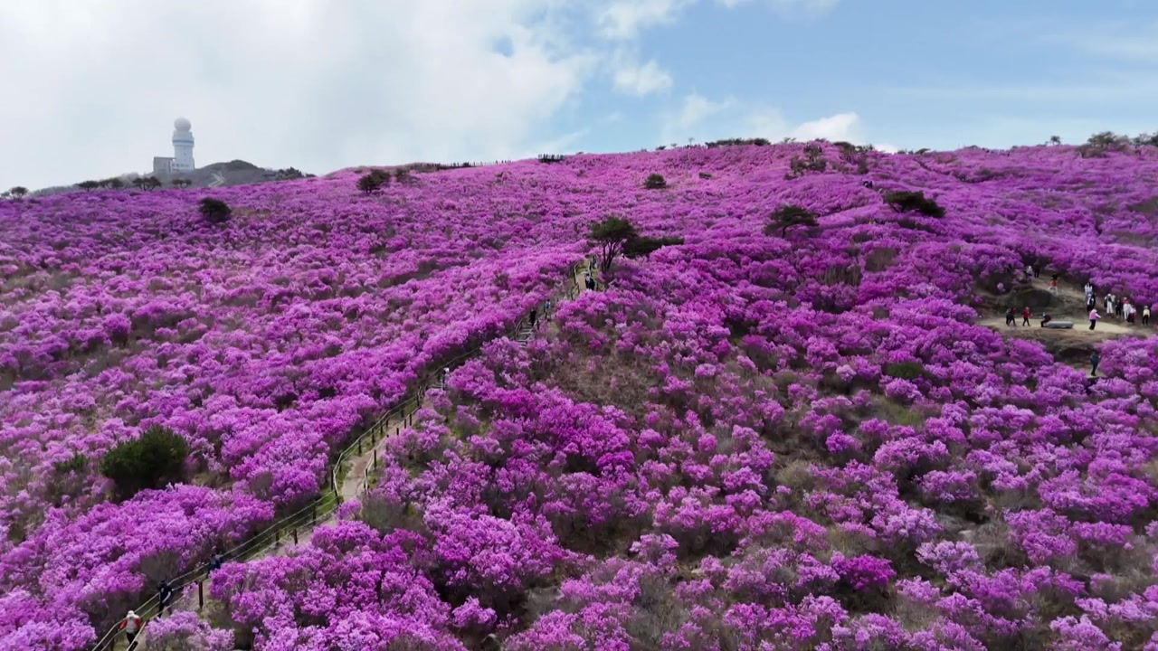 축구장 140개 넓이 진달래 군락지에는 분홍빛 봄꽃을 즐기려는 사람들의 발길이 줄을 이었습니다.
