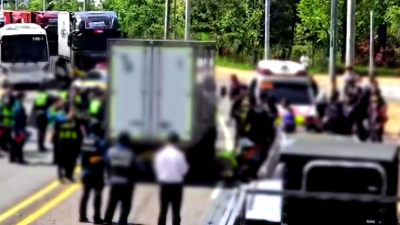 오늘(20일) 오전 10시 반쯤 제가 서 있는 이 도로에서 집회 중이던 화물연대 소속 조합원 3명이 물류 차량에 치였습니다.