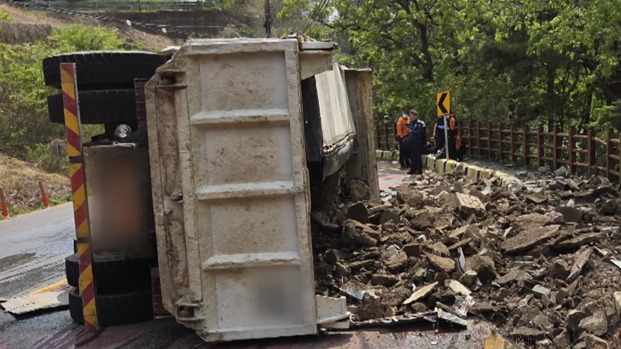 싣고 있던 철거 폐기물도 한꺼번에 쏟아졌습니다.