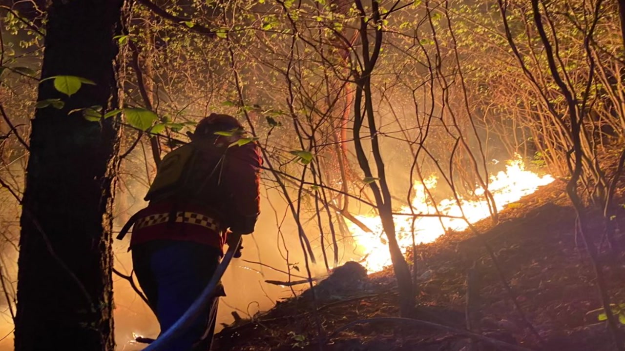 산불이 나자 진화 차량 30대와 진화 인력 110여 명이 긴급 투입됐고, 한밤중이라 소방헬기는 뜨지 못했습니다.