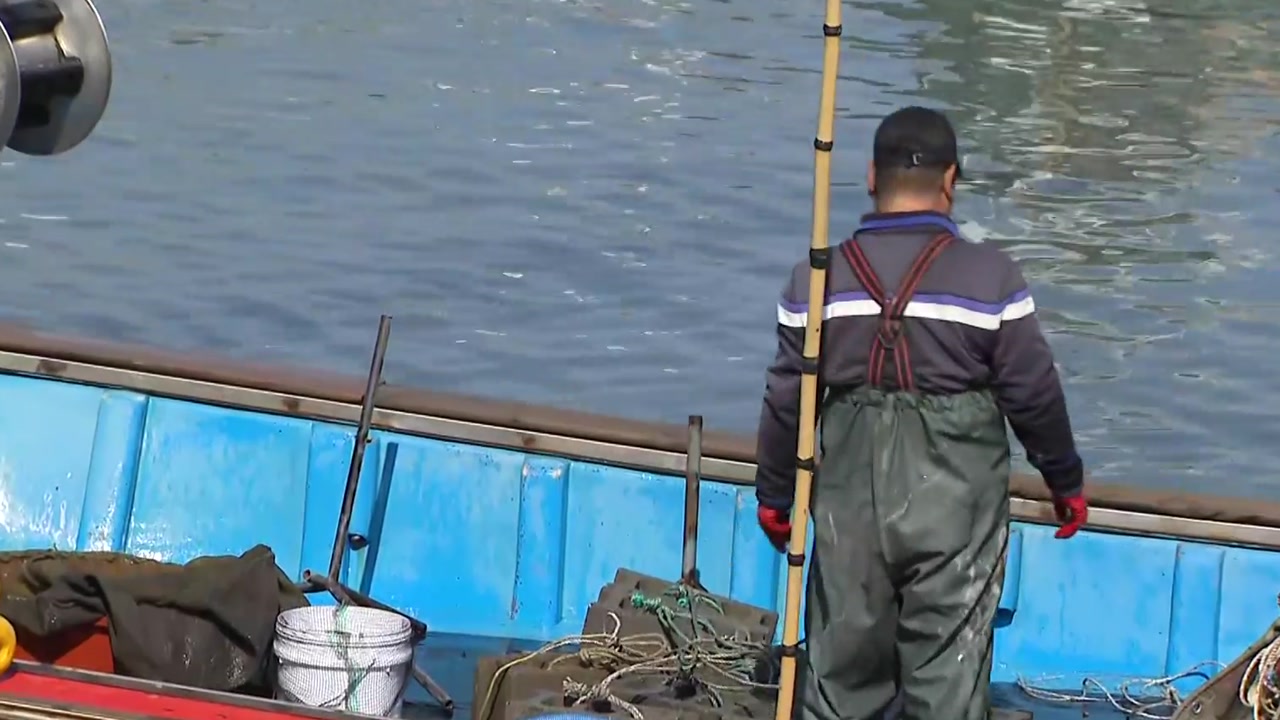 어민들은 배 위에서 어망을 정리하고, 선착장 주변의 배들도 발이 묶였습니다.