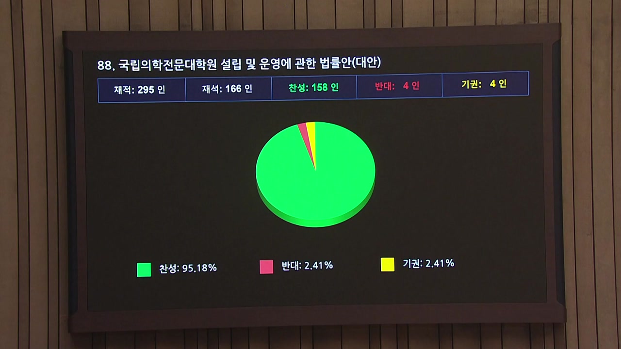 국회 본회의를 통과한 '국립의전원법'은 4년제 대학원 형태로 매년 100명을 선발해 국가가 학비 전액을 지원하는 내용을 담고 있습니다.