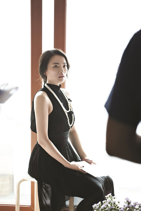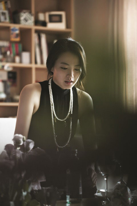 이번에 공개된 촬영 현장 사진에서 천우희는 블랙 민소매 드레스와 진주 목걸이를 걸치고 우아한 자태를 뽐냈다. '써니'의 본드걸과는 정반대의 매력이다.