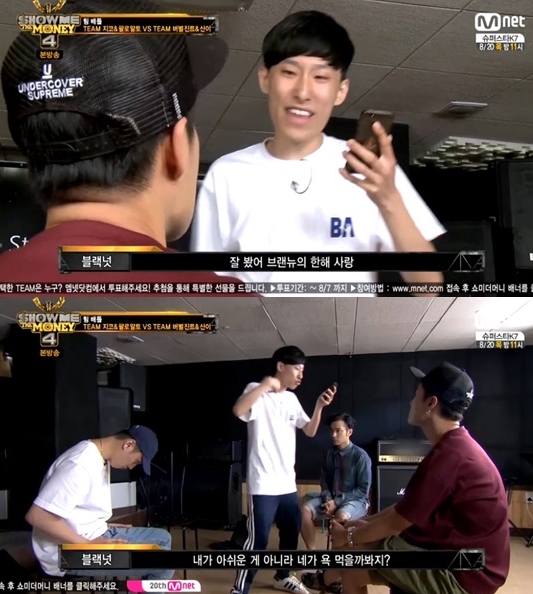 이에 블랙넛은 "저는 이미 떨어졌지 않느냐"며 분노의 랩을 선보였다. 블랙넛은 "잘 봤어 브랜뉴의 한해 사랑. 너희들의 정치판이 싫다. 안 해"라고 소리쳤고, 버벌진트와 산이는 눈물을 보이며 고개를 들지 못했다.