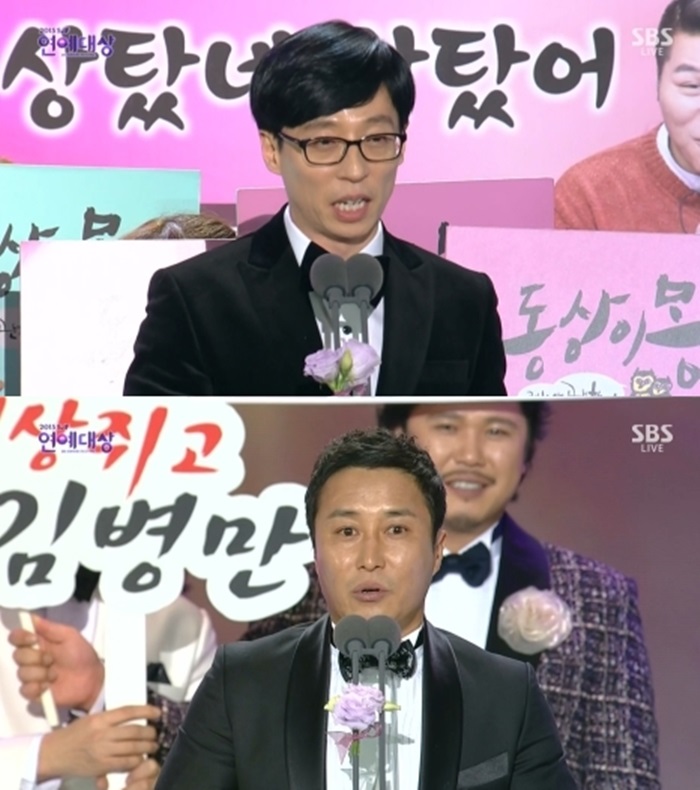 유재석과 김병만 가운데 어느 한사람이 올해 'SBS 연예대상 2015' 대상 트로피를 가져가도 이상하지 않을 만큼 큰 활약을 했다. SBS의 선택은 공동수상이었다.