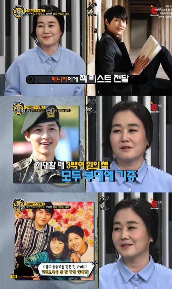 또 연예계 대표 뇌섹남으로 꼽히는 송중기는 군 복무 중 읽은 책이 300권에 달해 모두를 놀라게 했다. 연예부 기자는 "송중기가 이 책들을 다 읽고 후배들을 위해 기증하고 왔다"고 덧붙였다.