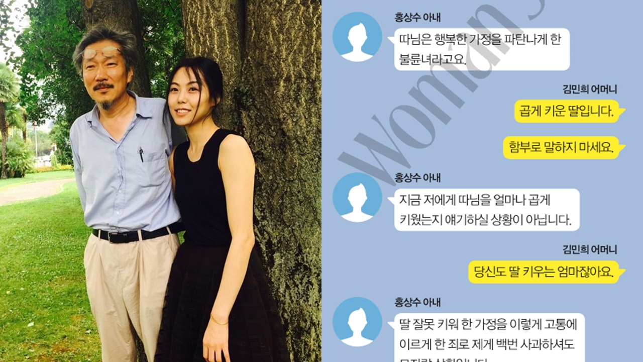 홍상수 감독과 배우 김민희가 불륜설에 휩싸인 가운데, 홍상수 감독의 아내와 김민희 어머니가 나눈 모바일메신저 대화가 공개됐다.