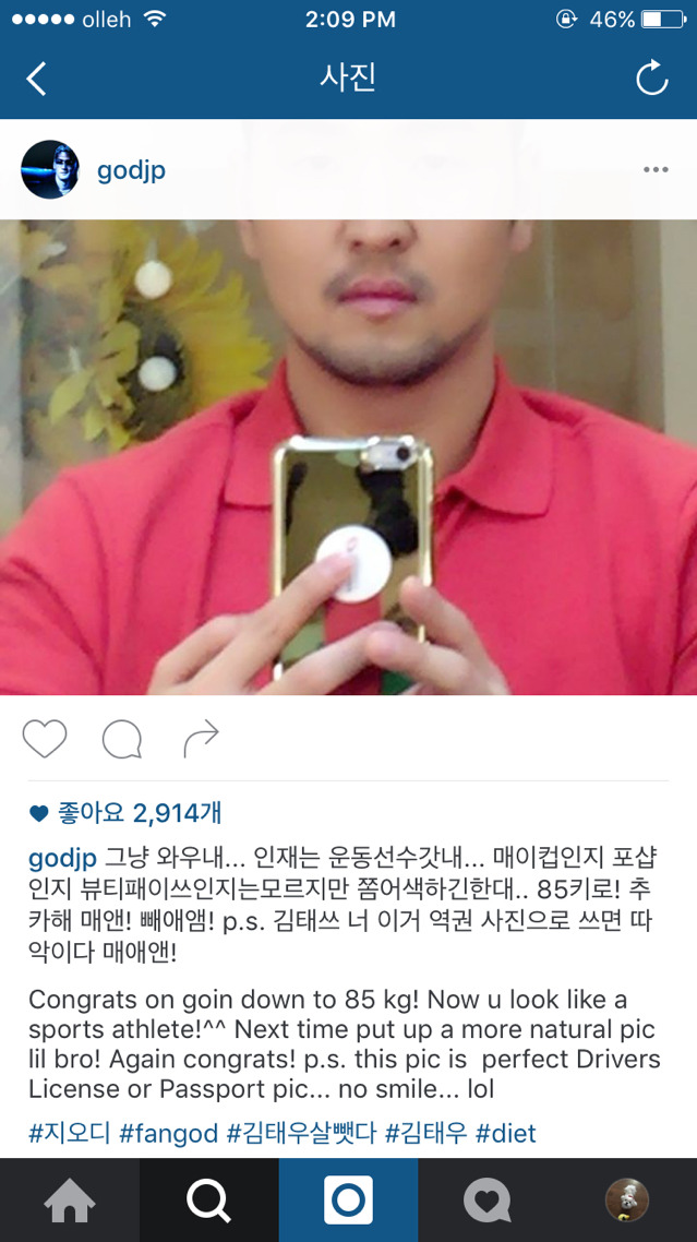 예를 들면 이런 식입니다. 지난해 박준형은 인스타그램에 god 김태우의 다이어트 성공 사진을 올리며 "포샵인지 뷰티패이쓰인지 뭔진 모르겠지만 성공했내"라고 평해 큰 웃음을 자아냈습니다.