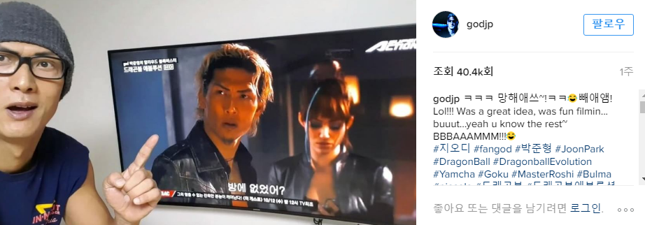 또한 최근에는 자신이 출연했지만 흥행에 실패한 영화 '드래곤볼 레볼루션'을 찍어 올리며 "망해애쓰"라는 솔직한 한마디를 남겼습니다.
