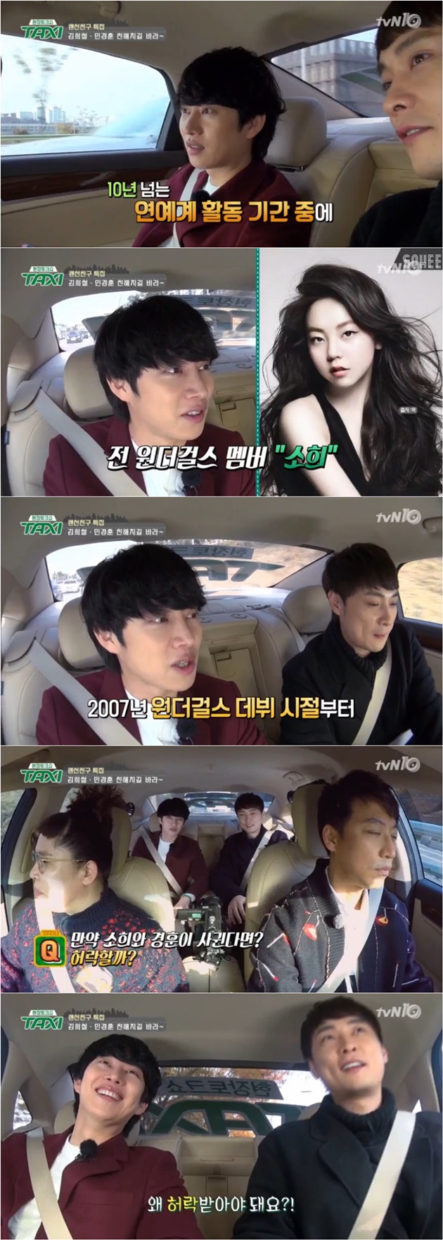 이영자가 "만약 소희와 경훈이 사귄다면 허락할까"라고 질문하자 민경훈은 "왜 그걸 허락 받아야되요?"라고 반문했고, 이에 김희철은 "뭐 이놈아"라며 버럭 소리를 질러 웃음을 자아냈다.