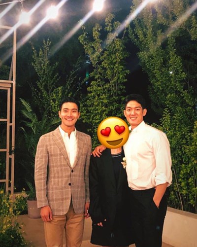 공개된 사진 속 최시원은 박재민과 그의 아내와 함께 활짝 미소 지은 채 카메라를 응시하고 있다.