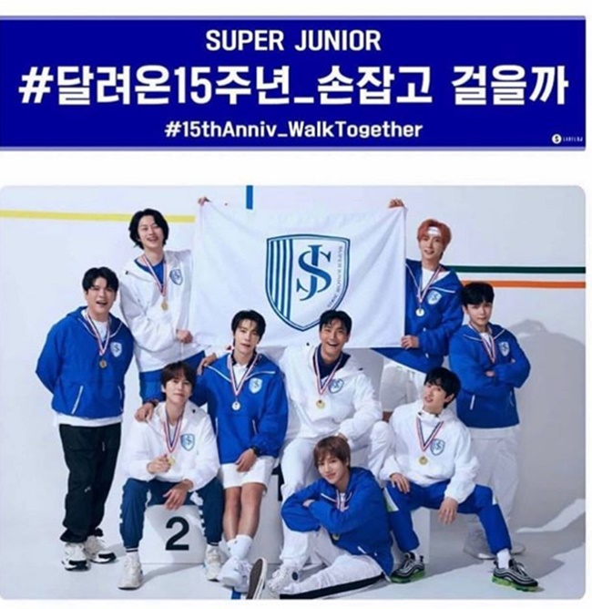 공개된 사진 속에는 그룹 슈퍼주니어의 데뷔 15주년을 축하하는 멘트와 멤버들의 모습이 담겨 있다.
