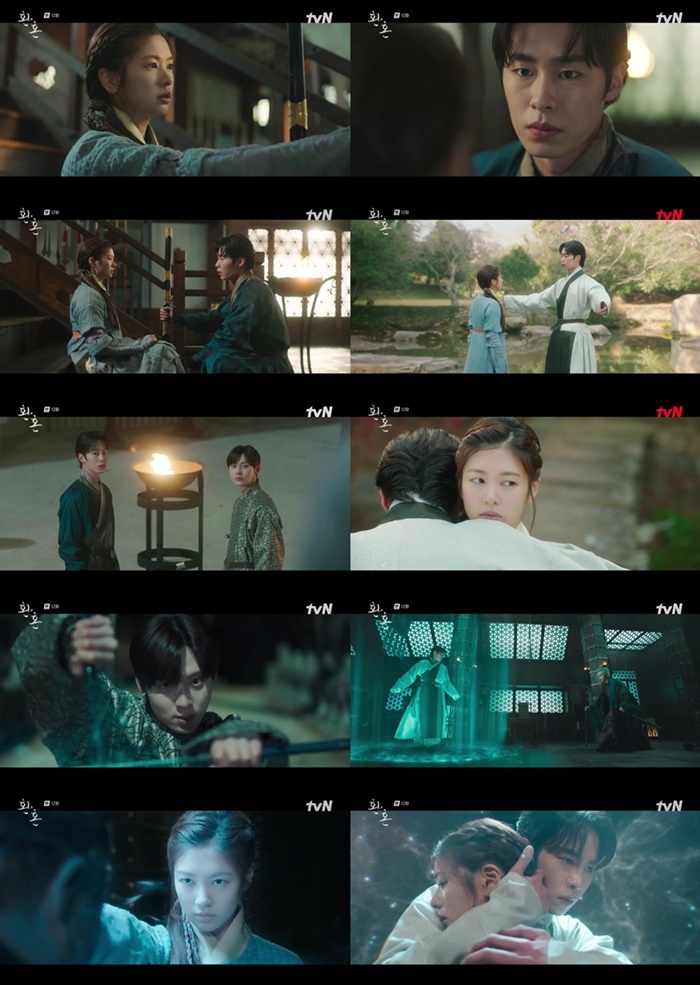 그런 가운데 극 말미 왕실에 숨어있던 환혼인 김내관(정지순 분)이 진무에 의해 폭주하며 긴장감을 자아냈다. 김내관은 왕비(강경헌 분)와 최씨 집안 당골네 술사의 환혼 비밀을 약점 삼아 협박했고, 이에 진무가 김내관을 죽이려 한 것. 때마침 김도주(오나라 분)의 심부름으로 천부관에 간 장욱과 무덕이는 김내관의 폭주를 목격했다. 이에 진무는 무덕이를 김내관의 기를 채울 먹잇감으로 던지고, 장욱을 김내관과 환혼시킬 것을 계략했다.