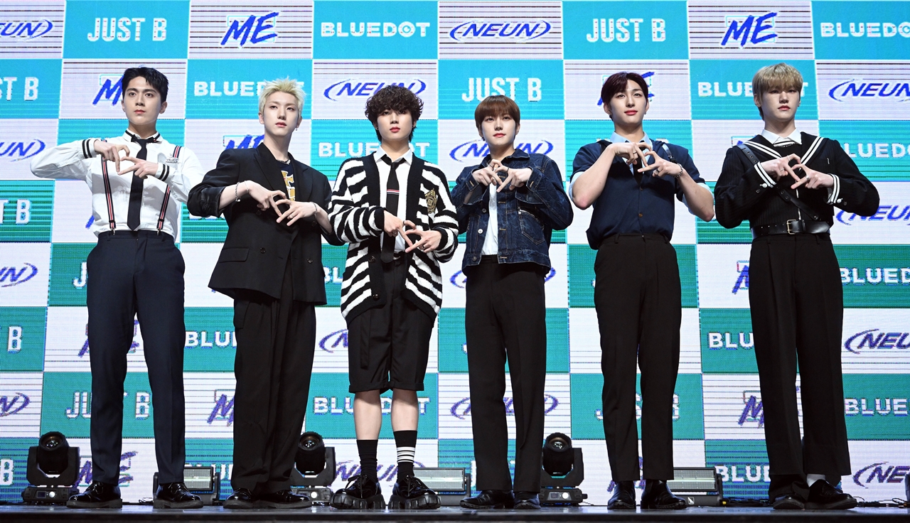 16일 오후 서울시 용산구 노들섬 라이브카페에서 그룹 저스트비(임지민, 이건우, 배인, JM, 전도염, 김상우)의세 번째 미니앨범 '= (NEUN)'(= (는)) 발매 기념 쇼케이스가 개최됐다.