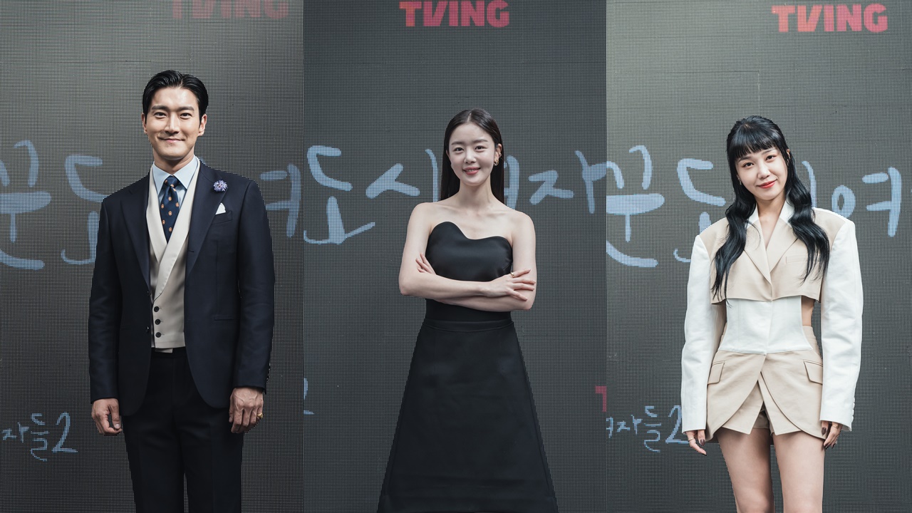 티빙 새 오리지널 '술꾼도시여자들2'(극본 위소영·연출 박수원)의 제작발표회가 6일 오후 온라인으로 공개됐다. 현장에는 배우 이선빈 씨, 한선화 씨, 정은지 씨, 최시원 씨, 박수원 감독이 참석했다.