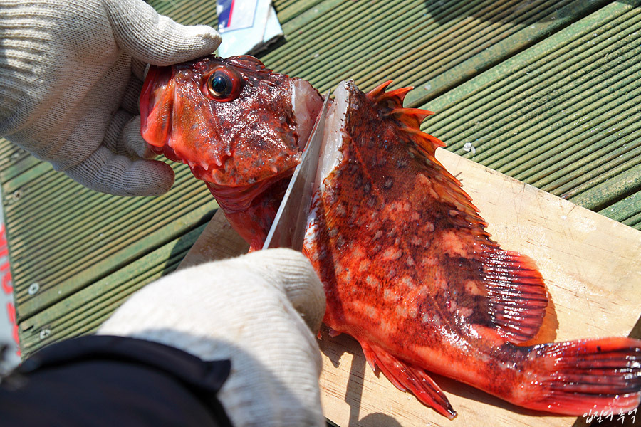 일반인에게는 잘 알려지지 않은 탓에 이를 취급하는 일부 횟집과 산지 재래시장이 아니면 구경조차 하기 어려울 만큼 귀한 생선이 붉은쏨뱅이가 아닐까 싶다. 제철은 12~4월.