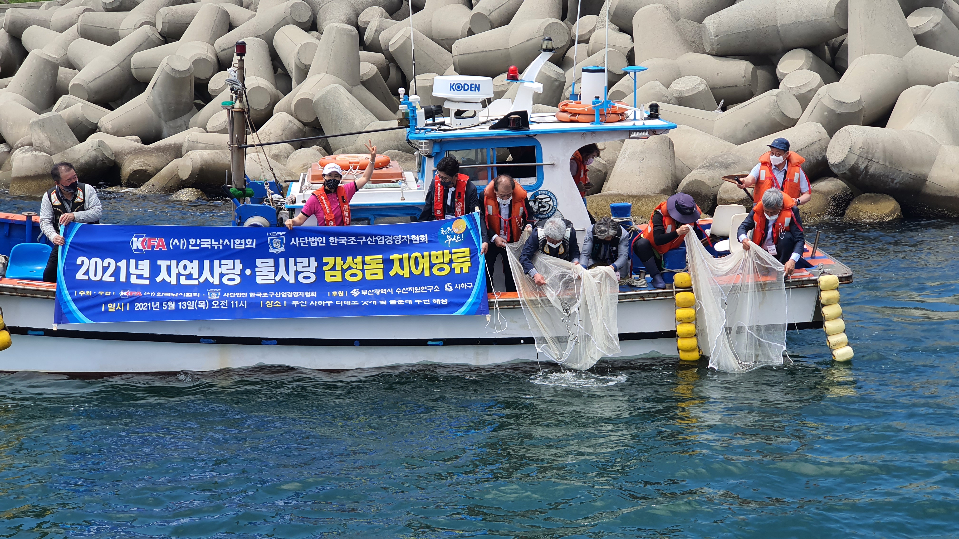 ‘2021 자연사랑 물사랑 감성돔 치어방류’ 행사가 지난 5월 13일 오전 11시부터 12시까지 부산 사하구 다대포 낫개항에서 치러졌다.