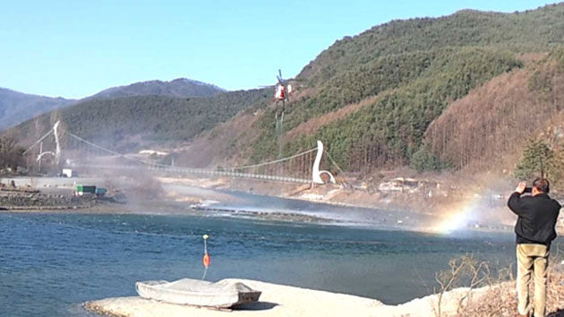 제보자들이 보낸 영상을 보면 산불이 민가 인근까지 번진 모습을 볼 수 있습니다. 또 소방헬기가 인근 하천에서 소방수를 채워넣고 있는 장면도 포착됐습니다.
