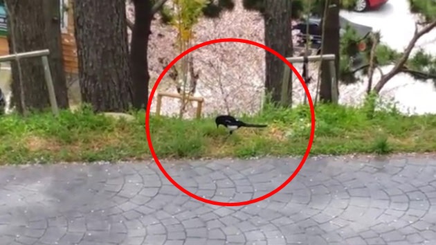 공원 산책길에서 뱀을 제압하는 까치의 모습이 포착됐습니다.
