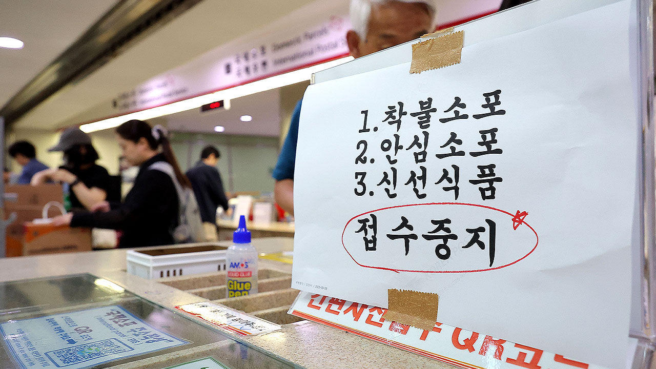 신선식품 자체로는 우체국 쪽에서도 신뢰라든가 이런 문제가 있어서 받지 않고 있고요. 다만 신선식품 배송도 아예 안 되고 있어서 신선식품을 통해서 추석 선물이라든가 하실 분들은 대안을 마련해야 되지 않을까라고 보여집니다.