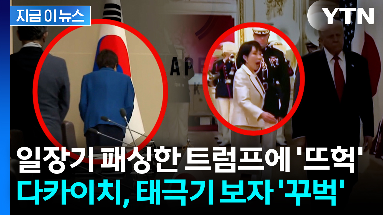 다카이치 총리가 이후 자리로 향하면서 회담장에 놓인 태극기 앞에 멈춰 서 고개를 숙여 예를 갖춘 뒤 이어 일장기를 향해서도 목례해 눈길을 끌기도 했습니다.