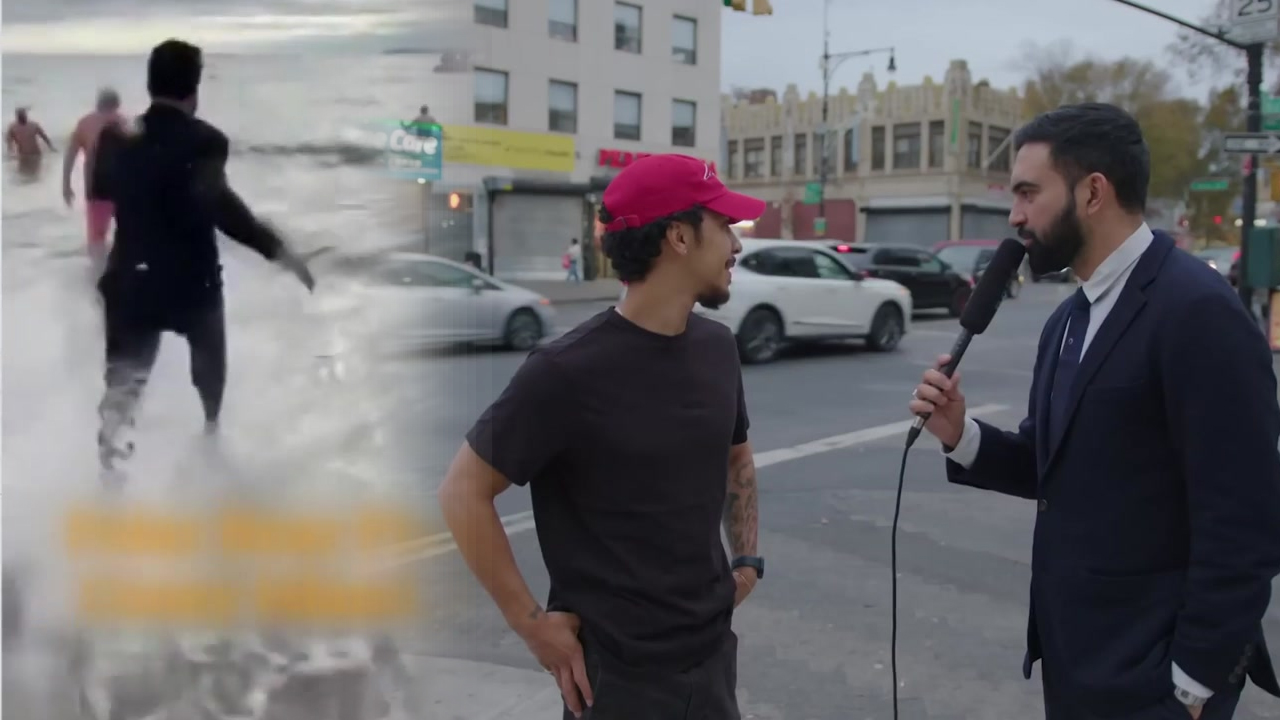 ◆김열수> 저게 지금 사람들이 수영하고 있는 걸로 봐서 겨울은 아닌 것 같아요. 겨울은 아닌데 그럼에도 본인이 뛰어들어갔는데 어떻게 보면 겨울에 뛰어들어갔으면 더 효과가 있었을 겁니다. 나는 추워 죽겠다는 거고요. 그다음에 렌트비 때문에 나 죽겠다는 이런 얘기거든요. 이것이 굉장히 많은 조회수가 나왔고 공감대를 많이 불러일으켰다, 이렇게 볼 수 있는데 저 사람이 래퍼 출신입니다. 래퍼 출신인데 힙합 래퍼의 이름이 영 카다먼이라고 하는 래퍼 출신이고 또 영화 OST에도 참여한 경력이 있더라고요, 찾아보니까. 게다가 어머니가 영화 감독 출신이니까 아마 이쪽에 대해서 굉장히 탤런트가 있는 것 같아요. 그래서 조금 전에도 지나갔습니다마는 사람들하고 도대체 뉴욕 시민들이 요구하는 게 뭐냐. 뭘 내가 해 줬으면 좋겠나. 어떤 공약이 필요하냐. 이런 걸 다 물어본 거죠. 그래서 다 물어본 결과가 공약으로 나왔고 그것이 굉장히 급진적일 수밖에 없었고 이것이 뉴욕 시민들의 마음을 샀고 결과적으로 저렇게 시장에 당선되는 결과로 연결이 되었다, 이렇게 보죠.