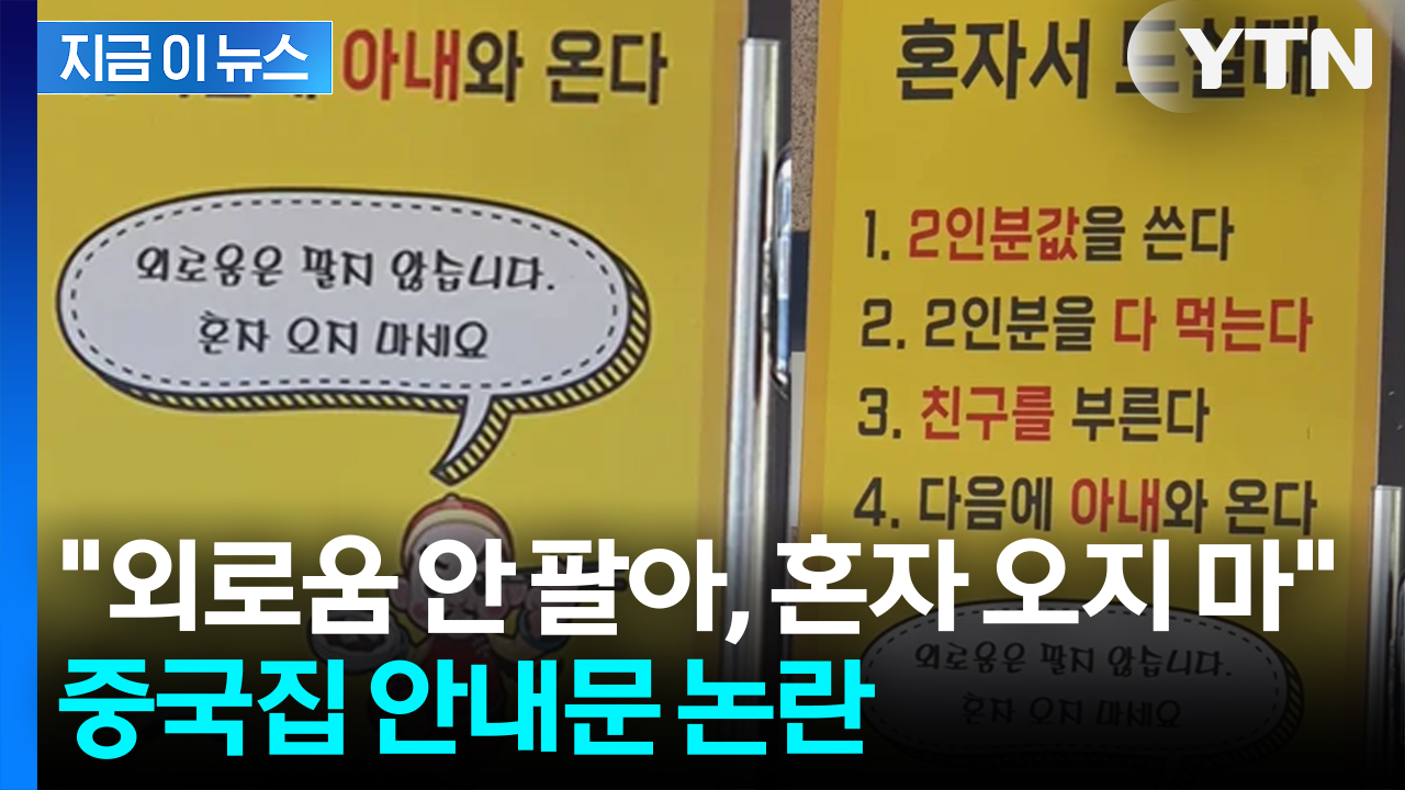 한 짜장면집이 "외로움은 팔지 않는다"는 안내문을 내걸고 '혼밥(혼자 밥 먹기)' 손님의 출입을 거부한 일이 온라인에서 화제입니다.
