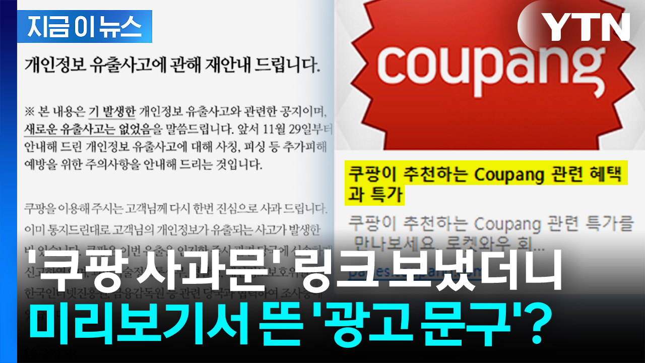 쿠팡이 대규모 정보 유출 사태와 관련해 다시 올린 사과문 페이지를 카카오톡 등으로 공유하면 홍보를 위한 '미리 보기' 제목이 노출돼 논란이 일고 있습니다.