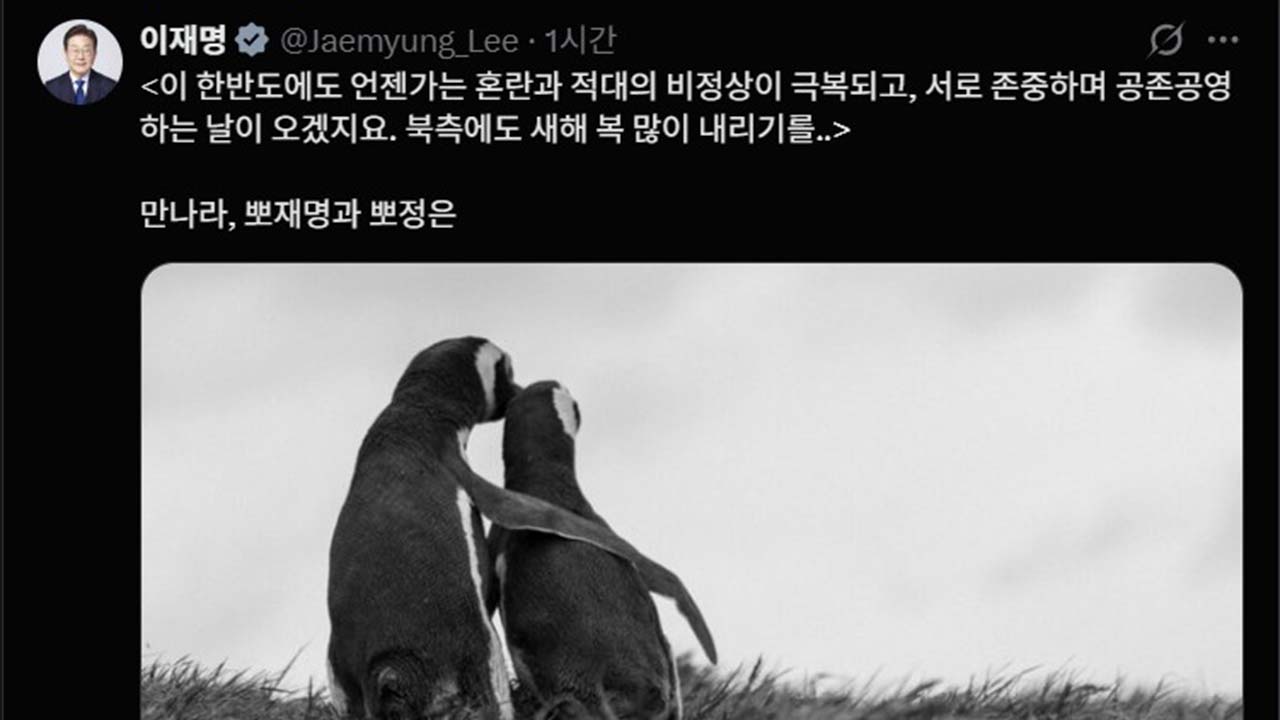 ◇앵커> 이재명 대통령이 SNS에 올린 게시물도 관심인데요. 귀국 중에 전용기 내에서 올린 것 같습니다. 본인이 직접 올린 건데 저 게시물입니다. 만나라, 뽀재명과 뽀정은. 이게 김정은 위원장과의 만남을 내가 적극적으로 추진하겠다 이런 의지가 담긴 걸까요?