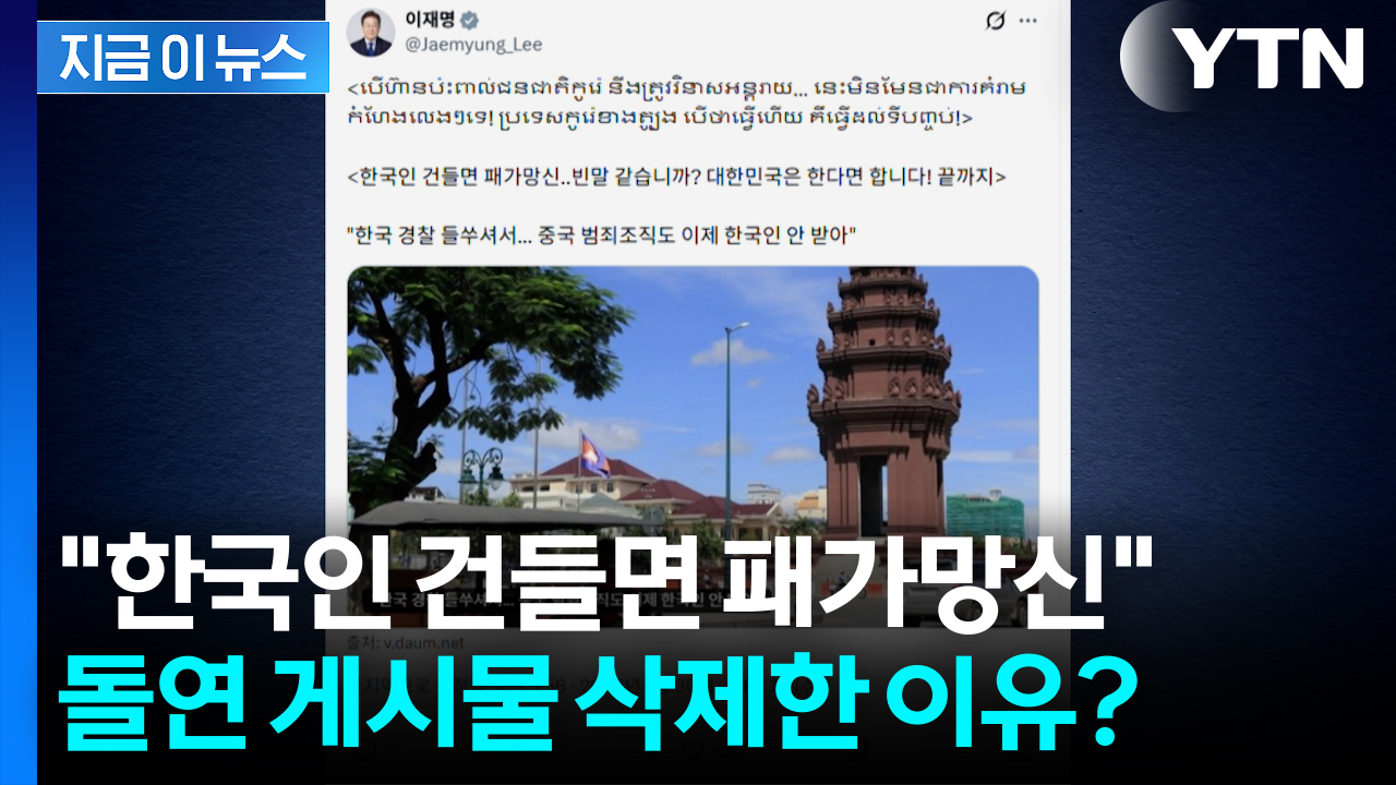 앞서 이 대통령은 지난달 30일 SNS에, 한국 경찰이 들쑤셔서 캄보디아 내 중국 범죄 조직이 한국인을 받지 않는다는 내용의 언론 기사와 함께 ’한국인을 건들면 패가망신한다’는 취지의 글을 한국어와 캄보디아어로 올렸습니다.