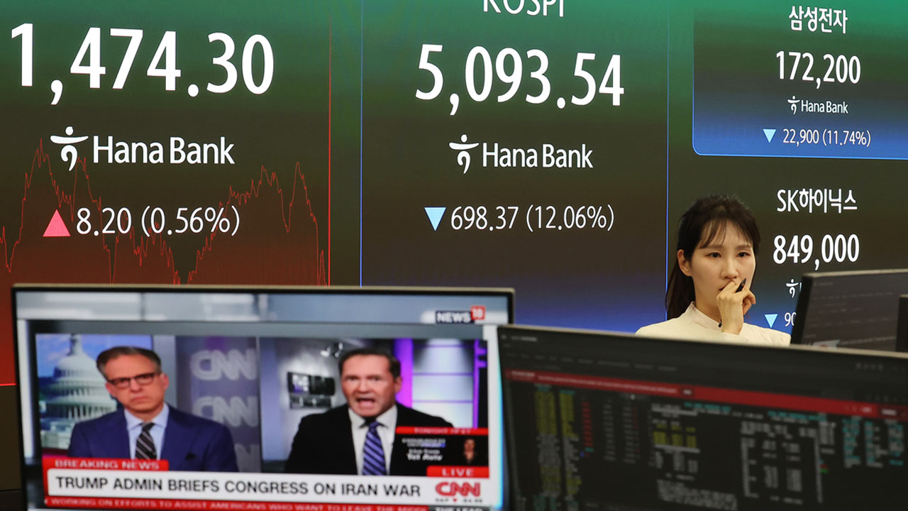 ◆이인철> 18일 전만 하더라도 코스피 6300까지 장중에 찍었는데 하루하루가 한 번도 경험하지 못한 날들이 계속 이어지다 보니까 화요일에는 7. 24% 빠졌어요. 여기가 바닥이겠거니 했는데 다음 달은 바닥이 아니네. 지하실에도 벙커가 있었어요. 12. 06%가 빠졌습니다. 이게 9. 11테러 기억하실 텐데. 2001년 사건이에요. 9월 1일, 월드 트레이드 센터가 오사바 빈 라덴에 의해서 폭파됐던. 당시에 미 증시는 그 충격으로 인해서 일주일 동안 휴장했어요. 그런데 우리는 열었어요. 열자마자 다 매도하니까 12. 02%가 빠졌던 겁니다. 그게 우리나라의 굉장히 흑역사인데 그걸 또 갈아치운 거예요. 그런데 그다음 날은 역대 최대로 오릅니다. 490포인트가 올라요. 그래서 아까 제가 얘기했잖아요. 국내증시의 야수의 심장을 가진 사람만 할 수 있다. 외신의 평가입니다. 이러다 보니 V자형 반등이 있을 수 있겠지만 저는 우리 증시가 그동안 너무 많이 오른 것도 있고 그다음에 중동 의존도가 너무 높고 에너지가 수출과 직결되고 여기에다가 환율까지 보태지다 보니까 워낙 아시아 시장에서 가장 먼저 위험자산 가운데 현금화를 했던 덜 손해보는 게 삼성전자, SK하이닉스예요. 대형주이기 때문에 많이 안 빠져요. 이미 이득을 보고 있는 상황이기 때문에 집중적으로 이것만 파는 거예요. 그러니까 우리는 너무 편중돼 있잖아요. 시가총액의 40%가 이 종목에 쏠려 있는데 이걸 외국인들이 거의 일주일에 10조 원씩 내다 파니까 환율까지 보고 있는 상황인데. 그런데 아직도 끝난 게 끝난 게 아니다. 유가, 환율 전쟁의 확전 여부에 따라서 중동발 유세에 따라서 우리 증시뿐 아니라 유가부터 시작해서 굉장히 일희일비하는 장세가 이어질 수 있습니다.