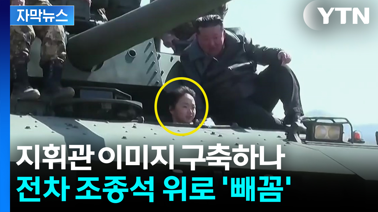 기동 중인 전차 조종석 위로 김주애의 얼굴이 선명합니다.