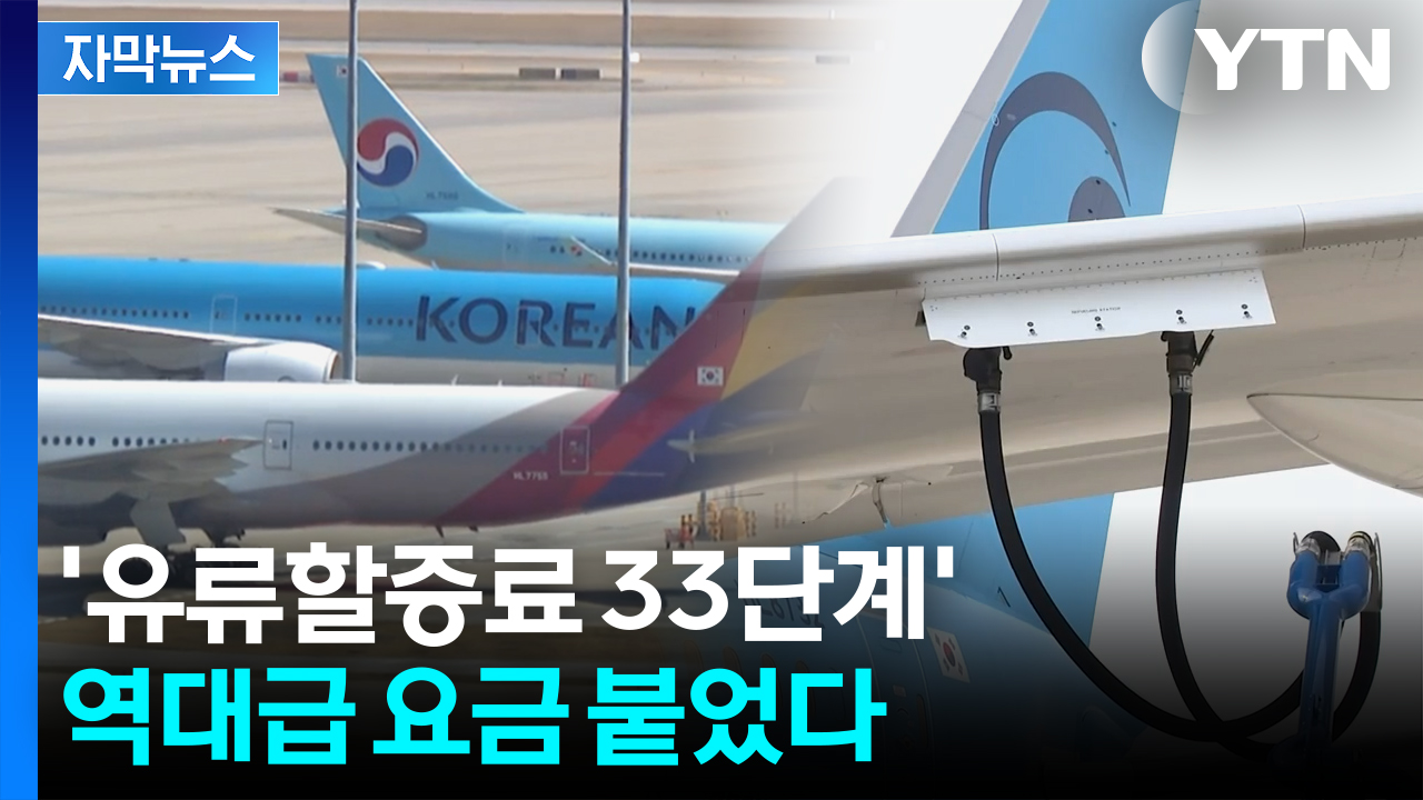 유류할증료 최고 단계인 33단계가 사상 최초로 적용되며 대한항공의 경우 최장거리인 뉴욕 왕복 비행편에 추가로 붙는 금액만 110만 원에 달할 예정입니다.