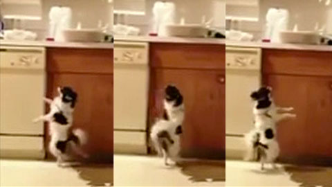 공개된 영상에는 강아지 한 마리가 '글로리아 에스테판'의 히트곡 '콩가'에 맞춰 앞발을 들고 두 발로 선 채 화려한 스텝을 밟는 모습이 담겨있습니다.