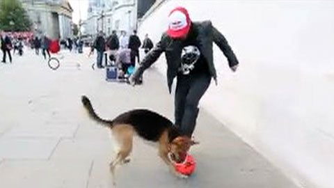 공개된 영상에는 집요하게 공을 쫓는 셰퍼드를 현란한 드리블로 따돌리는 남성의 모습이 담겨 있습니다.