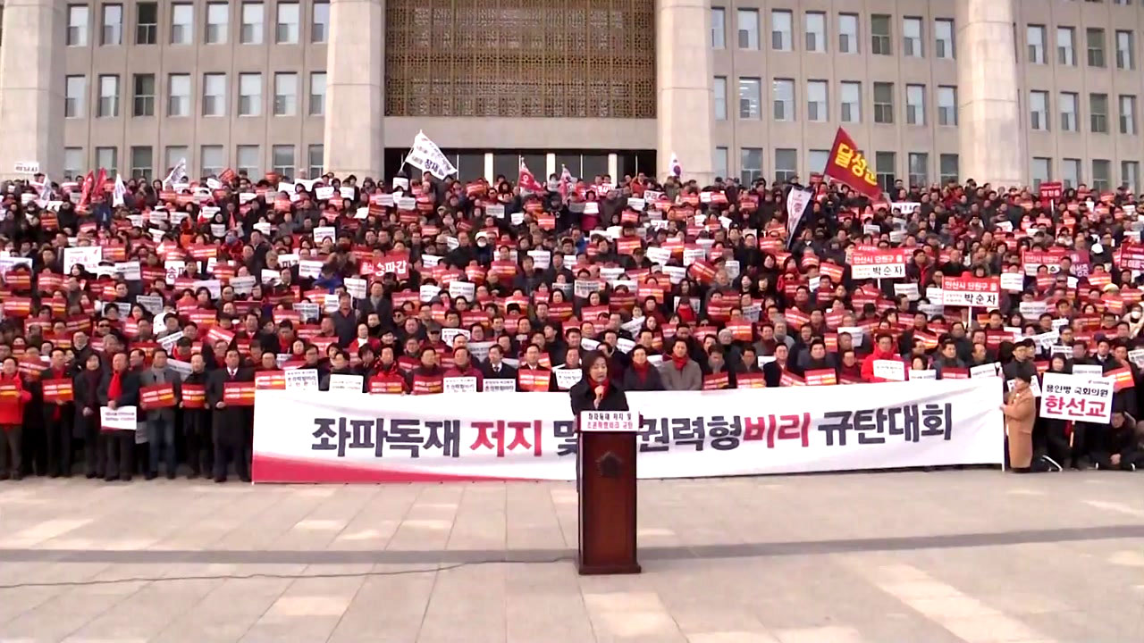 한국당은 현 정권의 각종 권력형 비리로 민주주의가 무너졌다며 후안무치한 청와대와 맹목적인 여당을 더는 볼 수 없다고 강도 높게 비판했습니다.