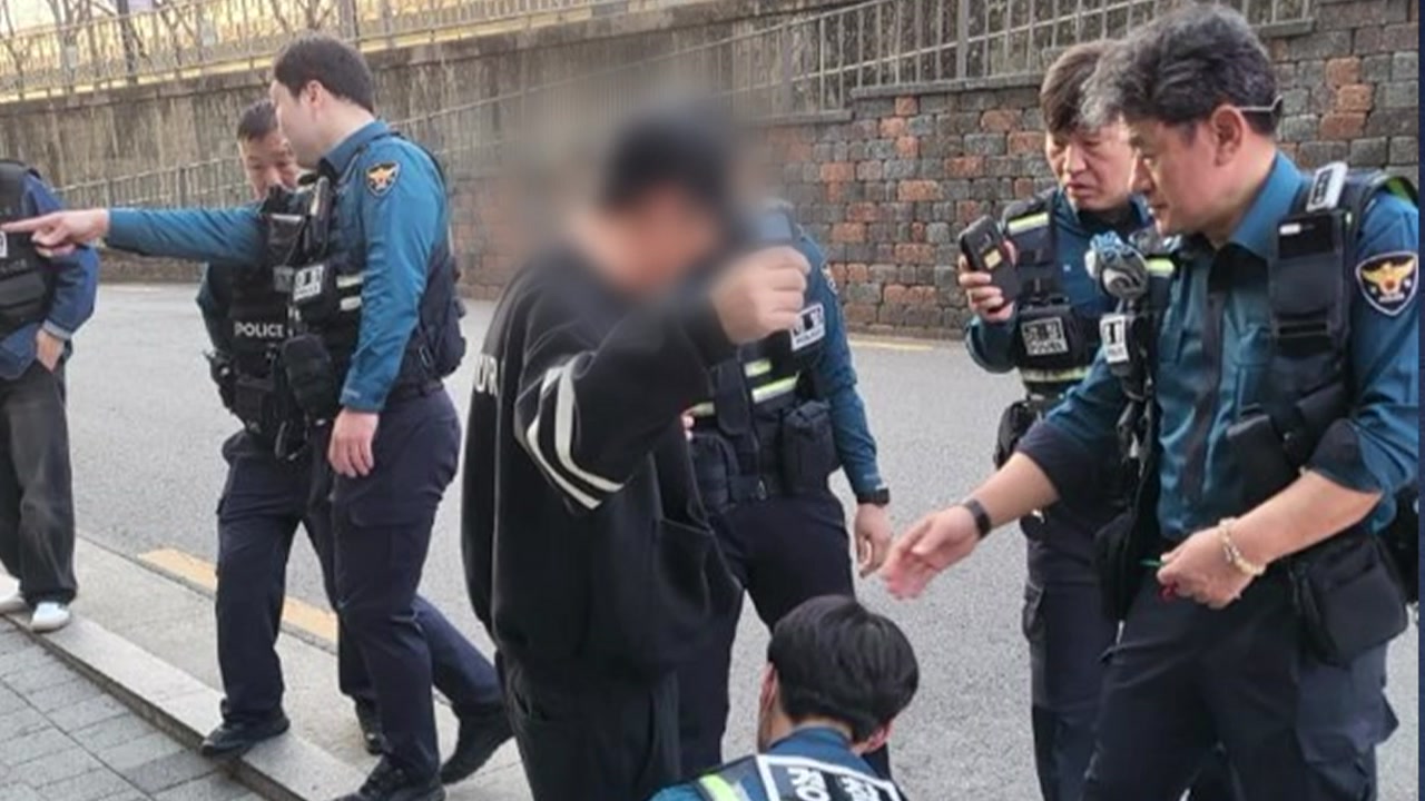 도심에서 행인들을 향해 흉기를 꺼내 든 중국인이 경찰에 붙잡혔습니다.