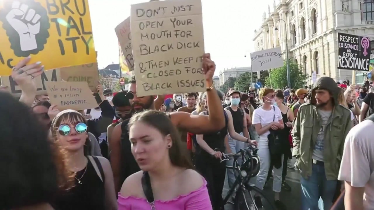 인종 차별과 경찰의 폭력에 항의하는 수천 명이 오스트리아 빈 거리를 행진하며 시위를 벌이고 있습니다.