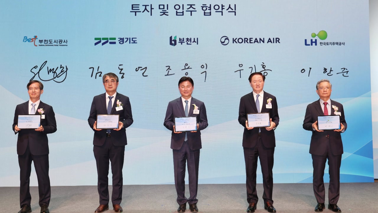 부천시가 대한항공과 손잡고 무인기연구소, 무인기조립장, 운항훈련센터, 안전체험관 등이 포함된 1조2천억 원 규모의 대규모 미래 모빌리티 기지를 조성합니다.